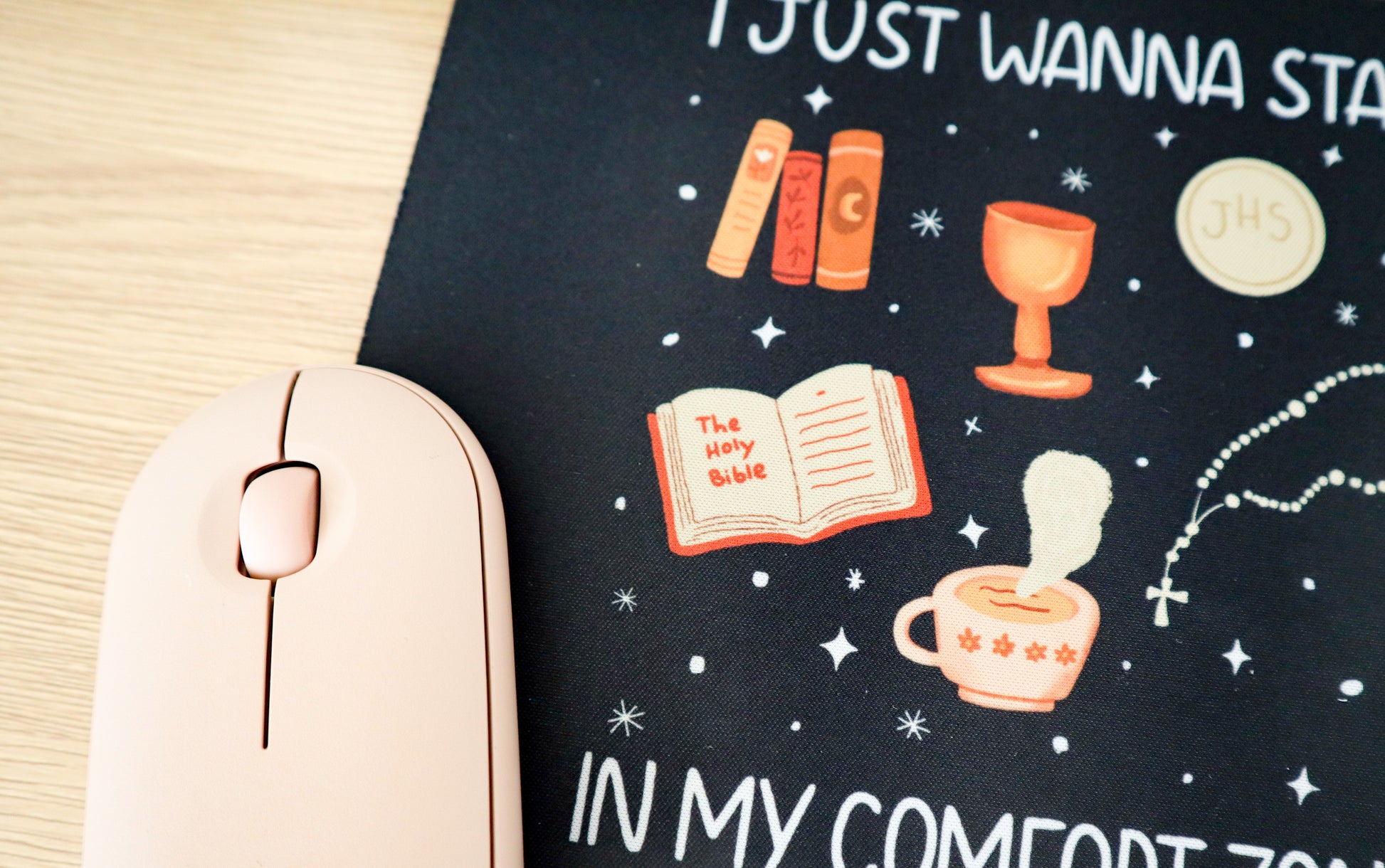 Mouse Pad featuring our "I just wanna stay in my comfort zone" illustration.