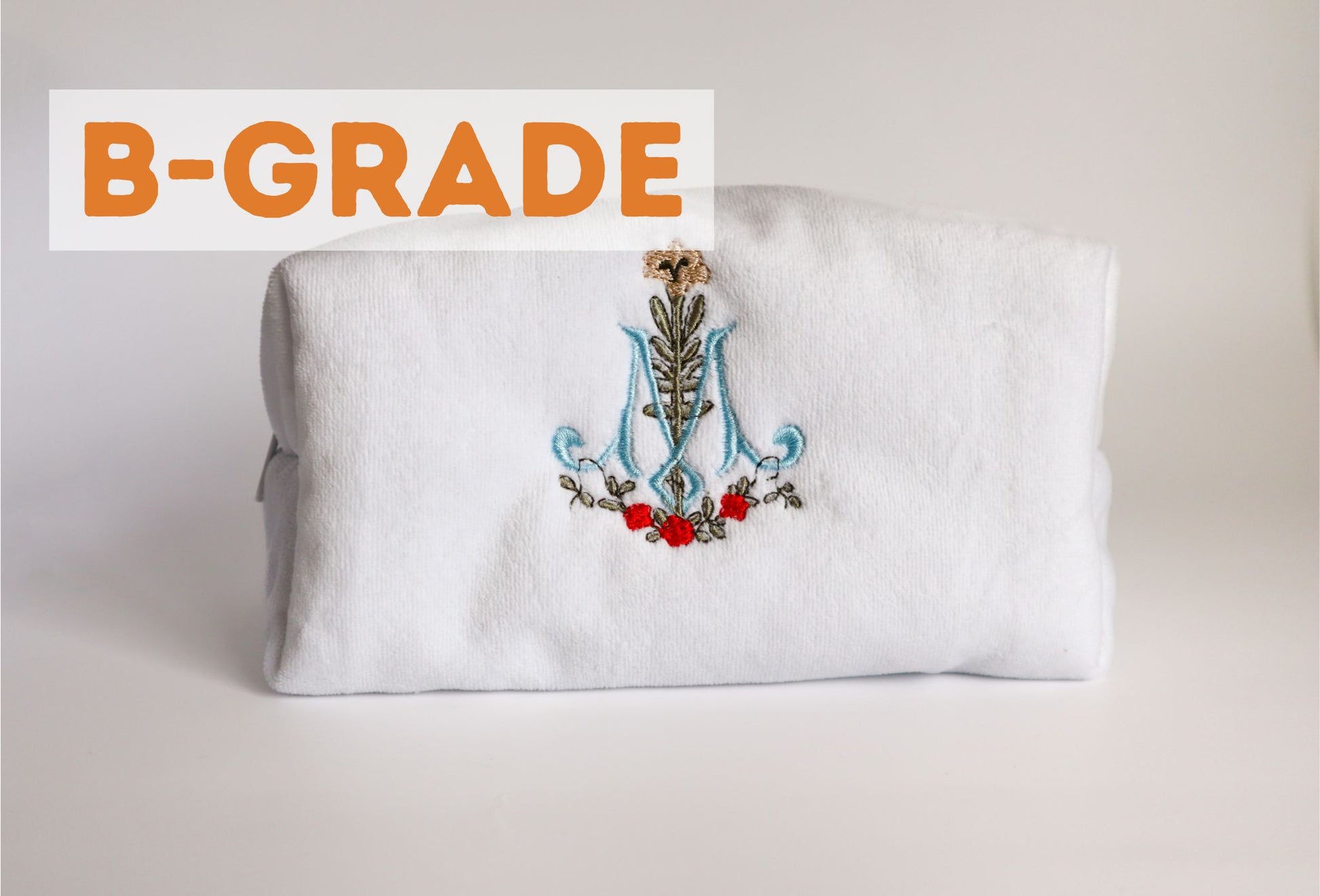 B GRADE pouches are items that have small dark spots on the fabric, barely noticeable.