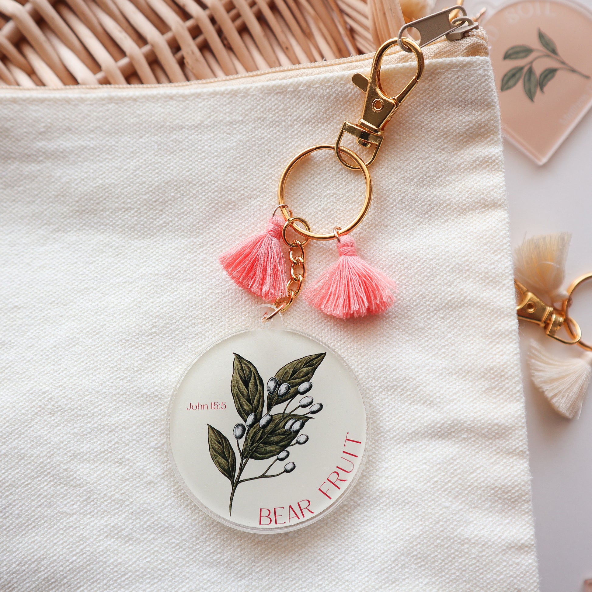 Our Bear Fruit keychain is inspired by the Gospel of John 15:5 and is a part of our Bear Fruit Collection. It makes a lovely gift for friends and loved ones, Easter basket and stocking stuffer!
