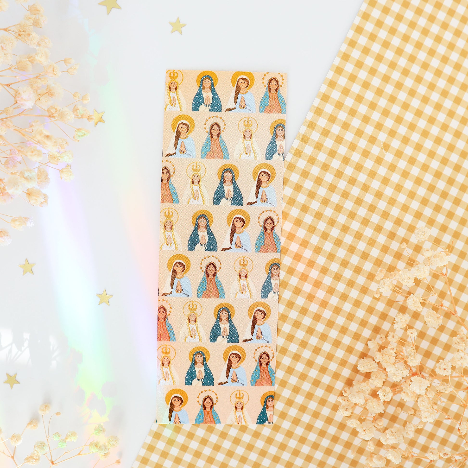 This bookmark features illustrations of titles of the Blessed Mother on the front and a prayer on the back. It makes a lovely addition for your books and as a gift.