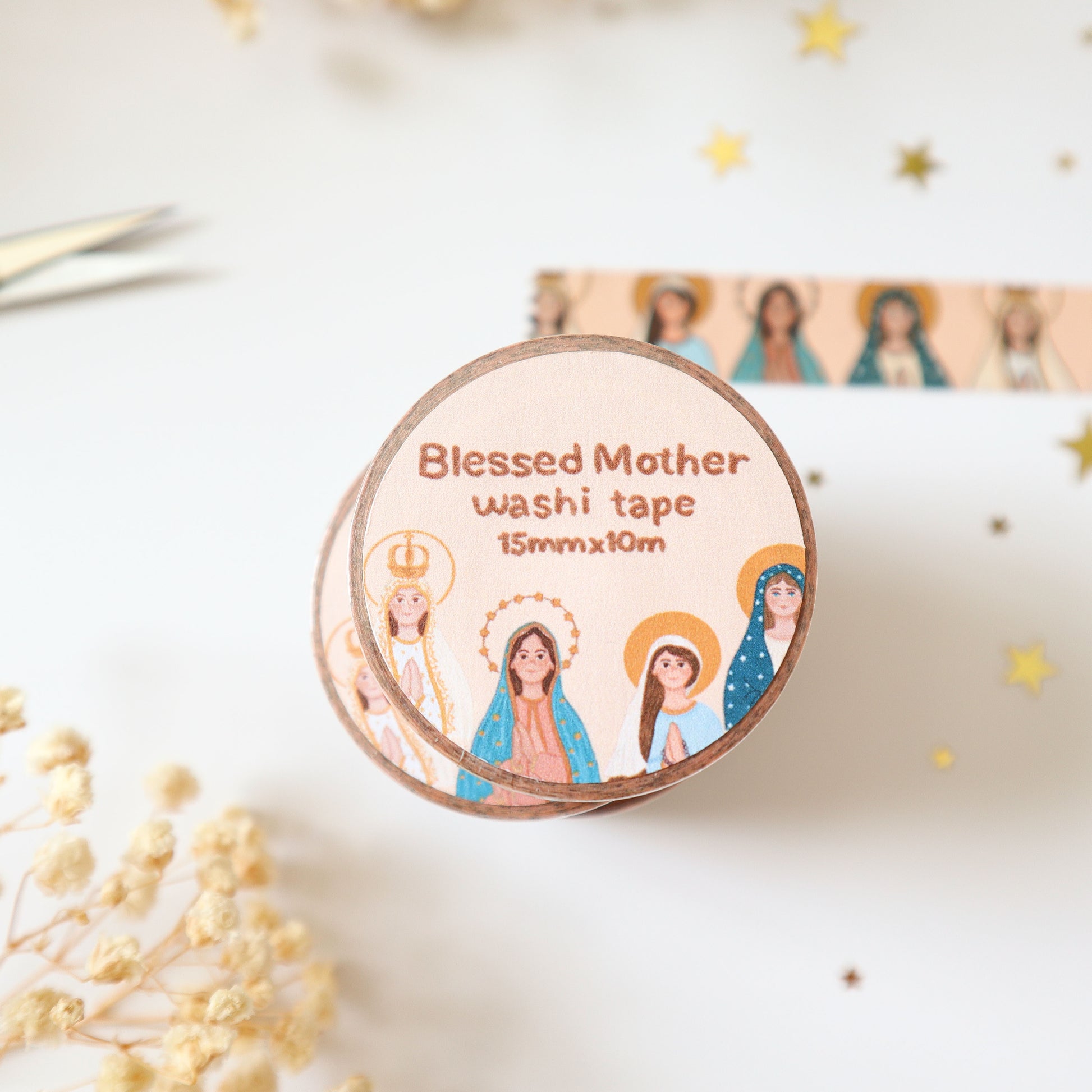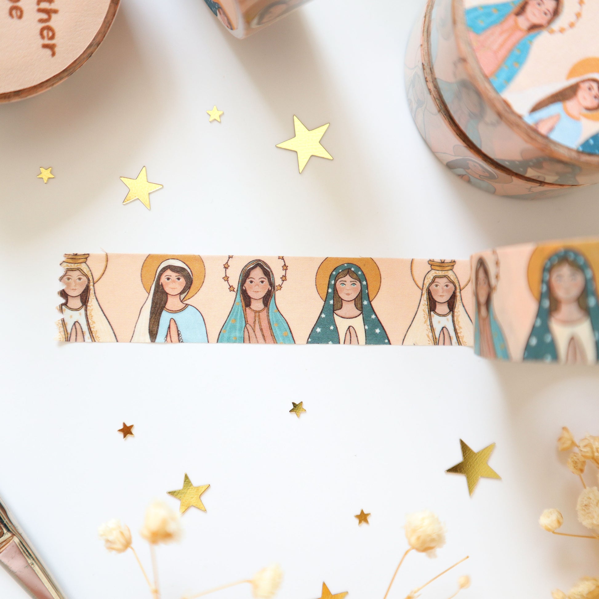 This washi tape features illustrations of different titles of the Blessed Mother. It makes a lovely addition for journals, planners, bibles, you name it!