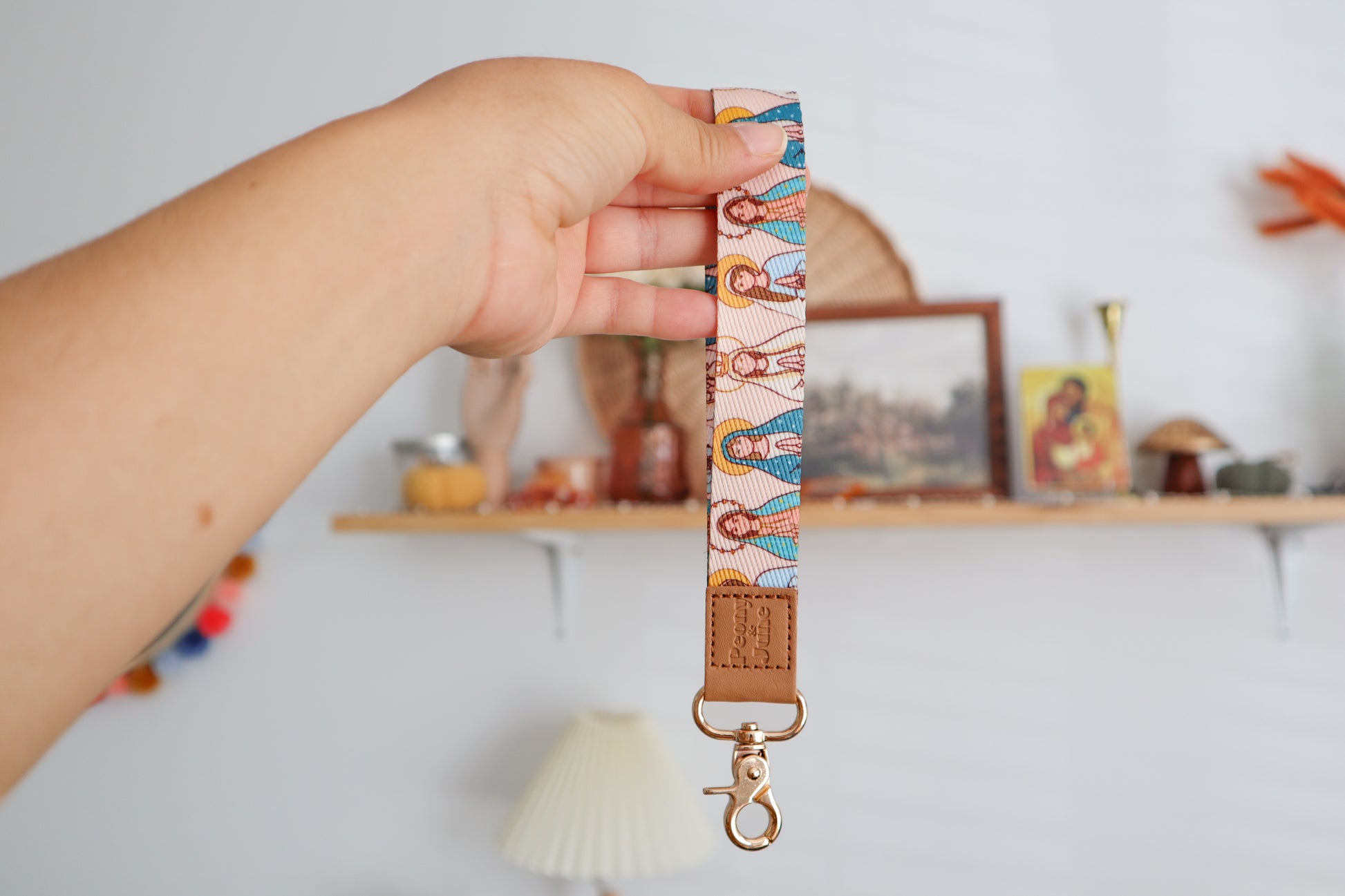 The Blessed Mother Wristlet features illustrations of the Blessed Mother and makes a lovely addition for your keys, purse, wallet, as a gift, you name it!
