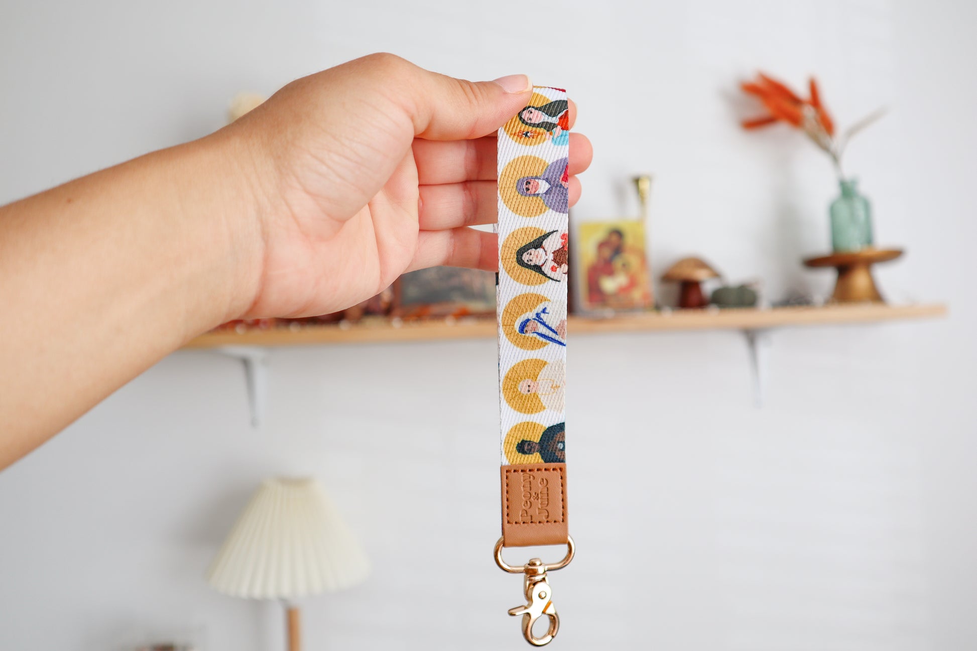 The Catholic Saints Wristlet features illustrations of known Saints of the Church and makes a lovely addition for your keys, purse, wallet, as a gift, you name it!