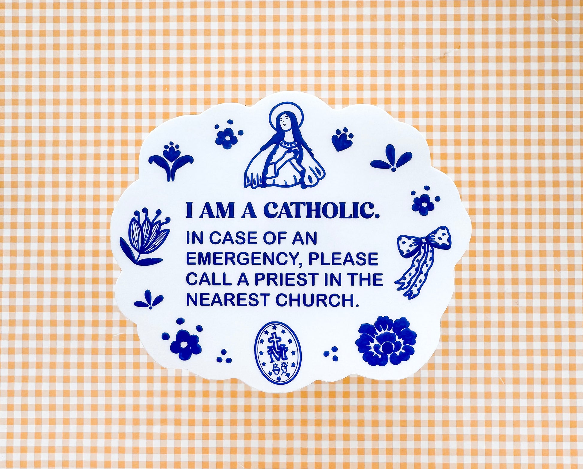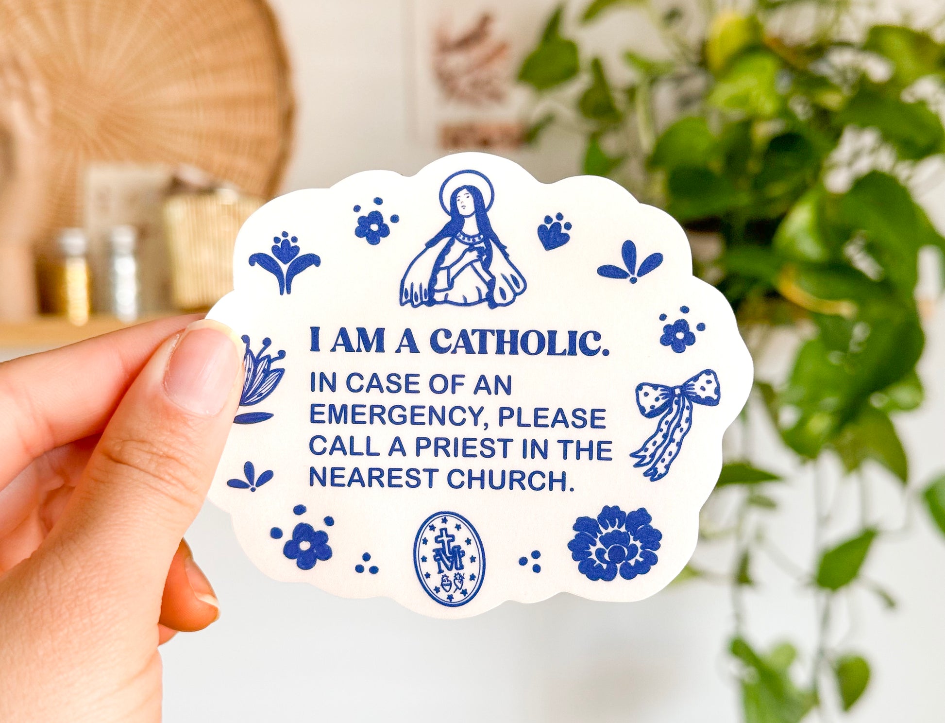"I am a Catholic. In case of an emergency, call a priest in the nearest church."