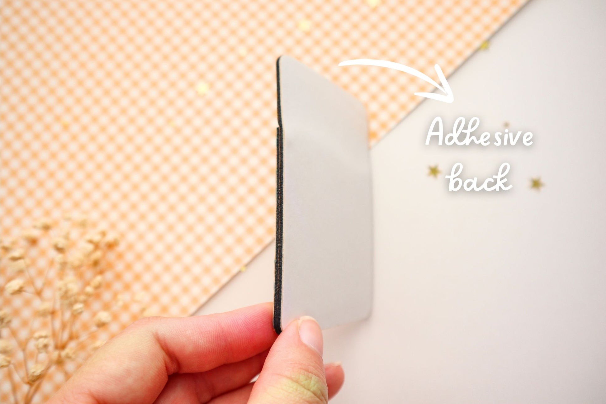 Phone wallets are functional holders that take very little space. They attach to the back of your phone/ phone case and hold multiple cards and also cash. The Marian Phone wallet features illustrations of Marian symbols and florals on a white background.