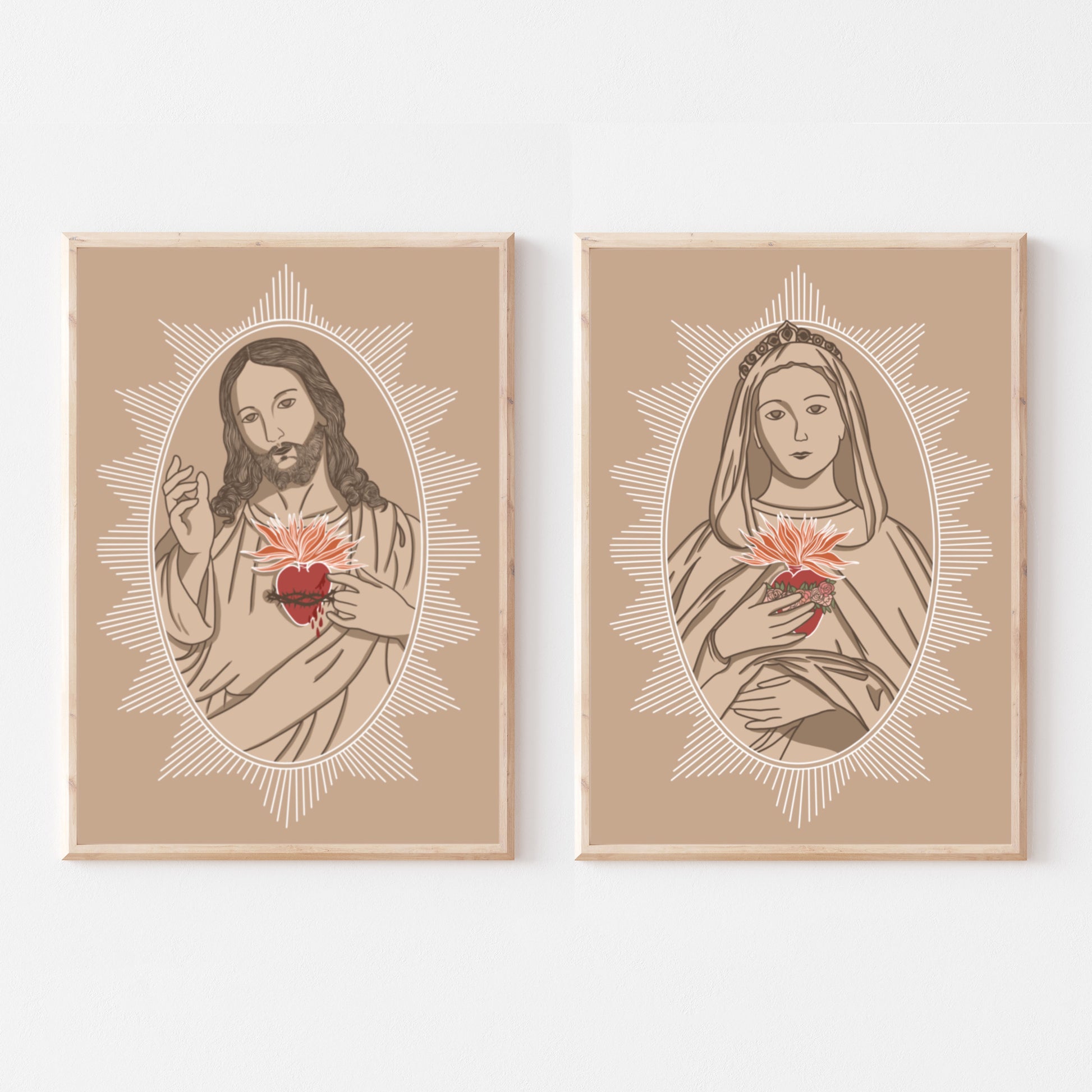 This set comes with 2 Giclee prints of two original illustrations by Peony&June featuring the Blessed Mother and Jesus with the Immaculate and Sacred Hearts.
