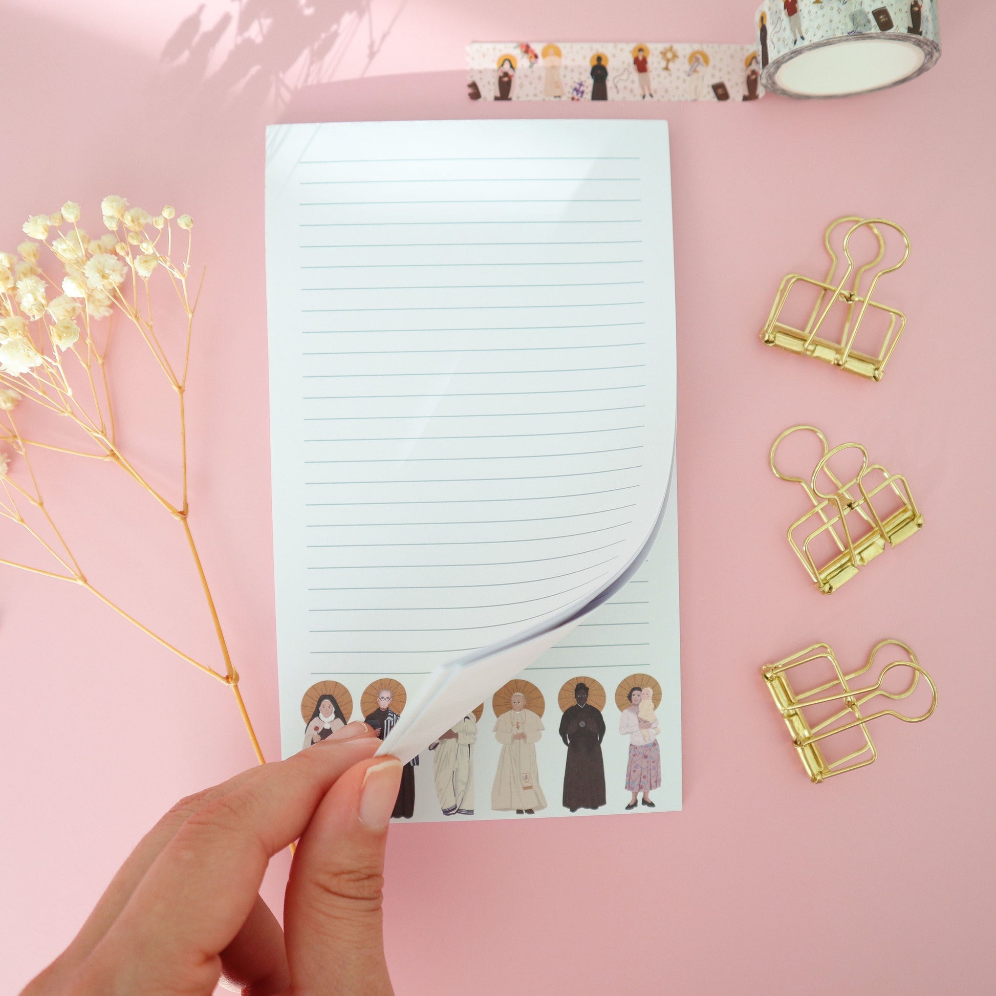This notepad features illustrations of Saints and Blesseds whose stories will inspire and encourage you in your own journey to sainthood.