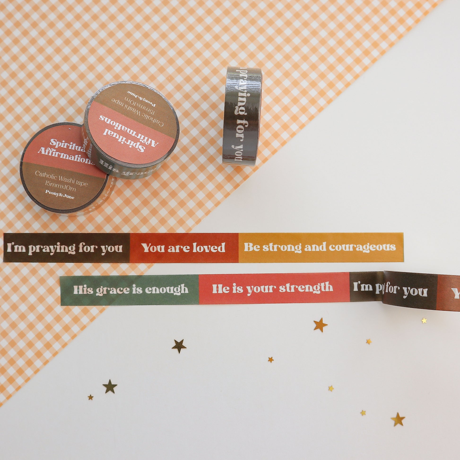 This washi tape features affirmations to encourage you and your loved ones in your faith and trust in God. It makes a lovely addition for journals, planners, bibles, you name it!