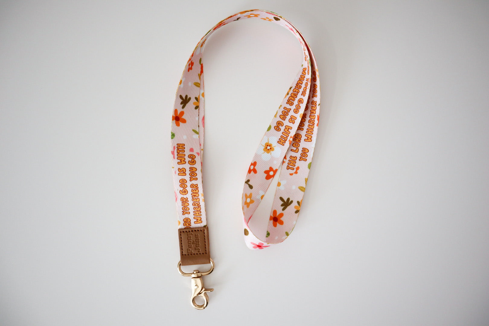 The Lord Is With You Lanyard features the bible quote "The Lord your God is with you wherever you go", from Joshua 1:9 on a pink floral background. It makes a lovely addition for your keys, purse, wallet, as a gift... you name it!